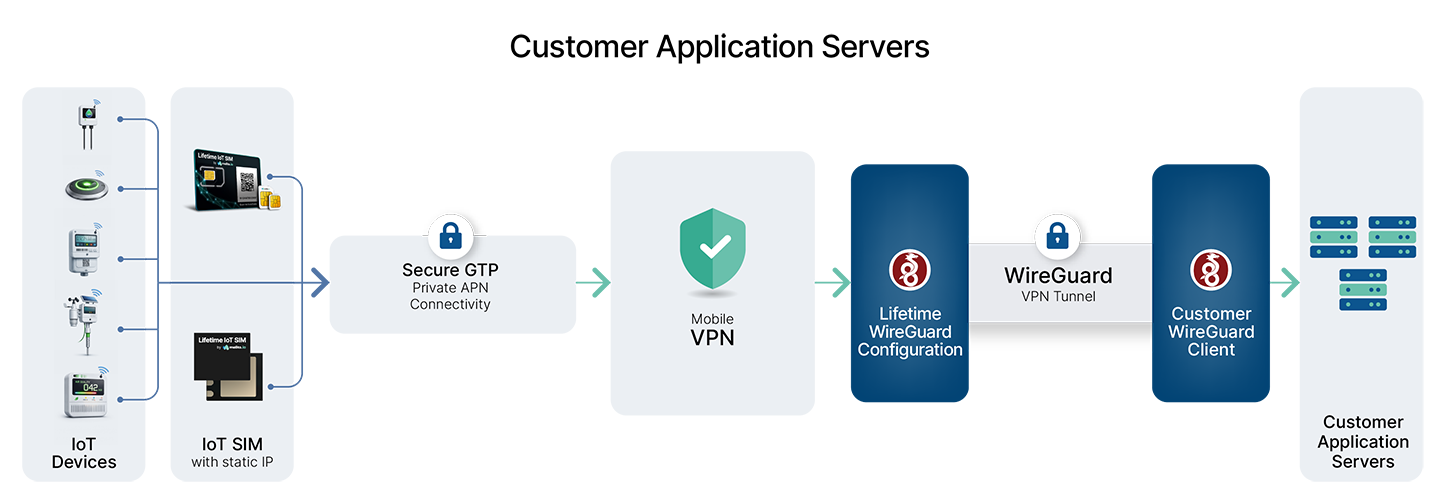 Mit unserer WireGuard VPN Integration erhalten Sie verschlüsselte Tunnelverbindungen für Ihre IoT SIMs, sofort einsatzbereit und nur mit wenigen Klicks direkt im IoT SIM-Portal buchbar. So verbinden Sie Ihre Geräte schnell, sicher und ohne zusätzlichen Hardware-Aufwand mit Ihrer Infrastruktur – egal, wo auf der Welt sie sich befinden.